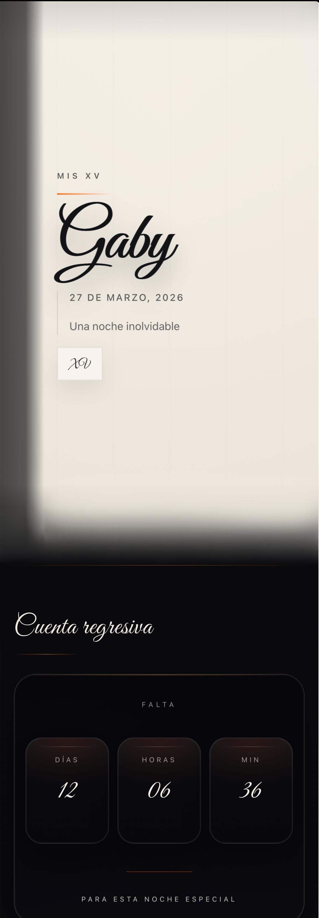 Diseñas con calma, cuidas cada detalle y publicas solo cuando tu invitación ya se ve como una experiencia premium de verdad.
