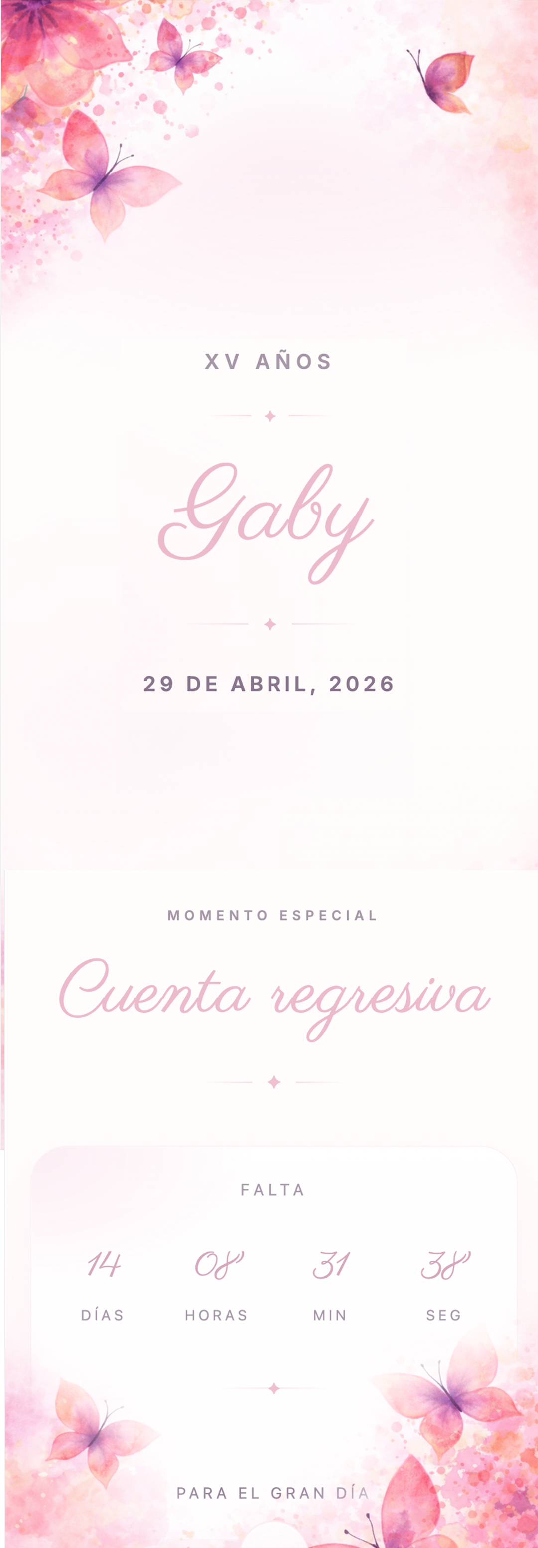 Edita por secciones, ajusta textos, horarios, fotos, ubicación y cada detalle visual hasta que todo se vea exactamente como lo imaginaste.